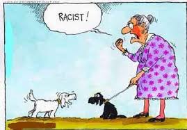 Av den mörkhyade kvinnan fick jag höra - Rasist...du är rasist - men inte hon (hon pekar på den unga mamman).